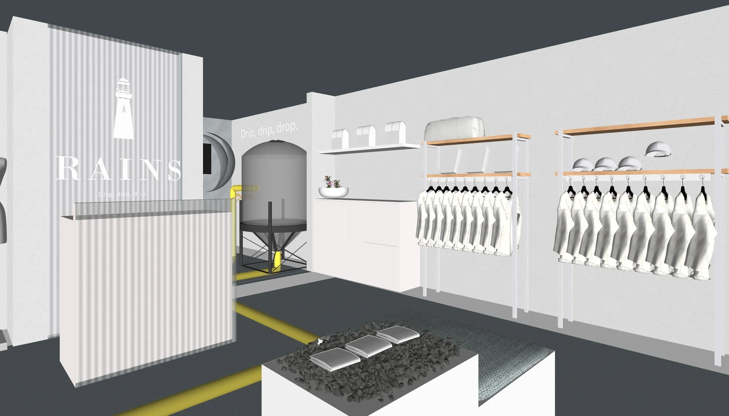 RAINS needed more than just stores, they needed experiences. Their audience craves uniqueness and sustainability, and the launch of the LOTUS line was the chance to deliver. The challenge: design an in-store concept that reconnected RAINS with its target group and re-established their USP.
